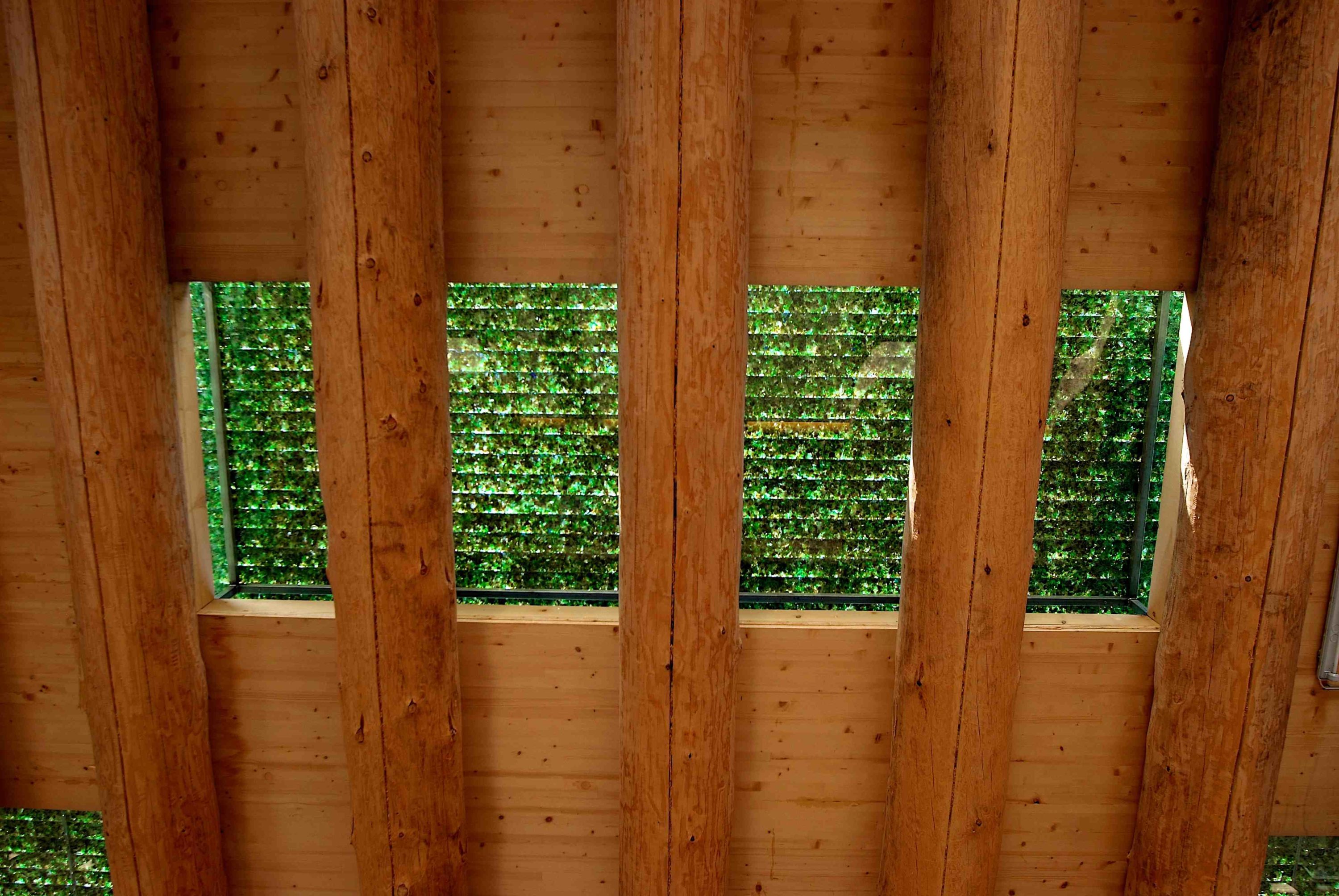 En continuité de la zone industrielle de Saint-Prex, le bâtiment propose une volumétrie simple et compacte. L’expression du bois renvoie à la forêt voisine. Outil de travail rationnel, le plan est commandé par la gestion des véhicules. A l’ouest, la déchèterie permet une circulation en boucle autour des conteneurs, sous un grand avant-toit. A l’est, accessible le long de la façade, se trouvent les services de la voirie (entretien de véhicules et stockages). Seuls les locaux du personnel sont chauffés (réfectoire, vestiaires, bureaux). Le bâtiment est exemplaire en termes écologiques ; la structure massive de bois rond (grumes) provient des forêts communales et voisines. L’habillage léger (bois équarri) s’en tient au minimum nécessaire. La toiture de verre pilé évoque l’industrie locale et le recyclage.